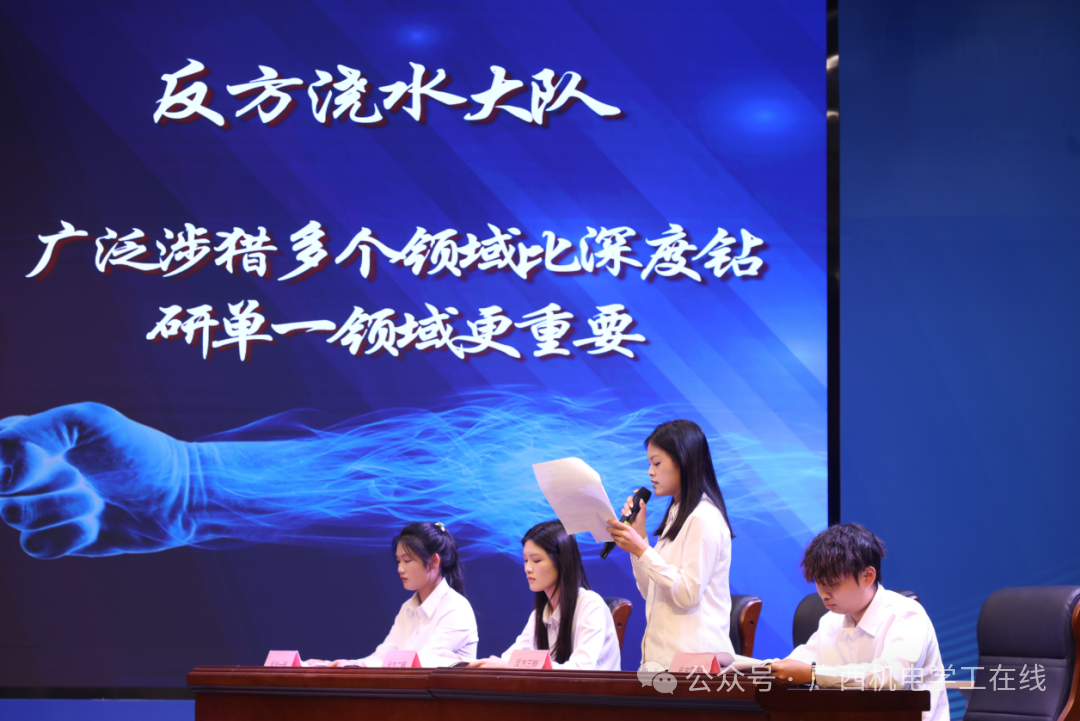 决赛现场气氛热烈而庄重,辩题紧扣当代大学生学习生活核心议题——“高校是否应该允许学生使用AI完成作业”“深度钻研单一领域是否比广泛涉猎多个领域更重要”,既呼应智能化时代教育新命题,又直击学风建设关键方向。比赛环节环环相扣,开篇立论时,正反方一辩提纲挈领、立场鲜明,为辩论筑牢逻辑基石;攻辩环节,双方二辩、三辩攻防有序,犀利提问与巧妙回应尽显敏捷思维;自由辩论阶段,辩手们引经据典、论证充分,攻防转换间彰显思辨智慧,将现场氛围推向高潮,每一次精彩发言都赢得全场阵阵掌声,充分展现了电子信息工程学院学子的思辨素养与表达风采。