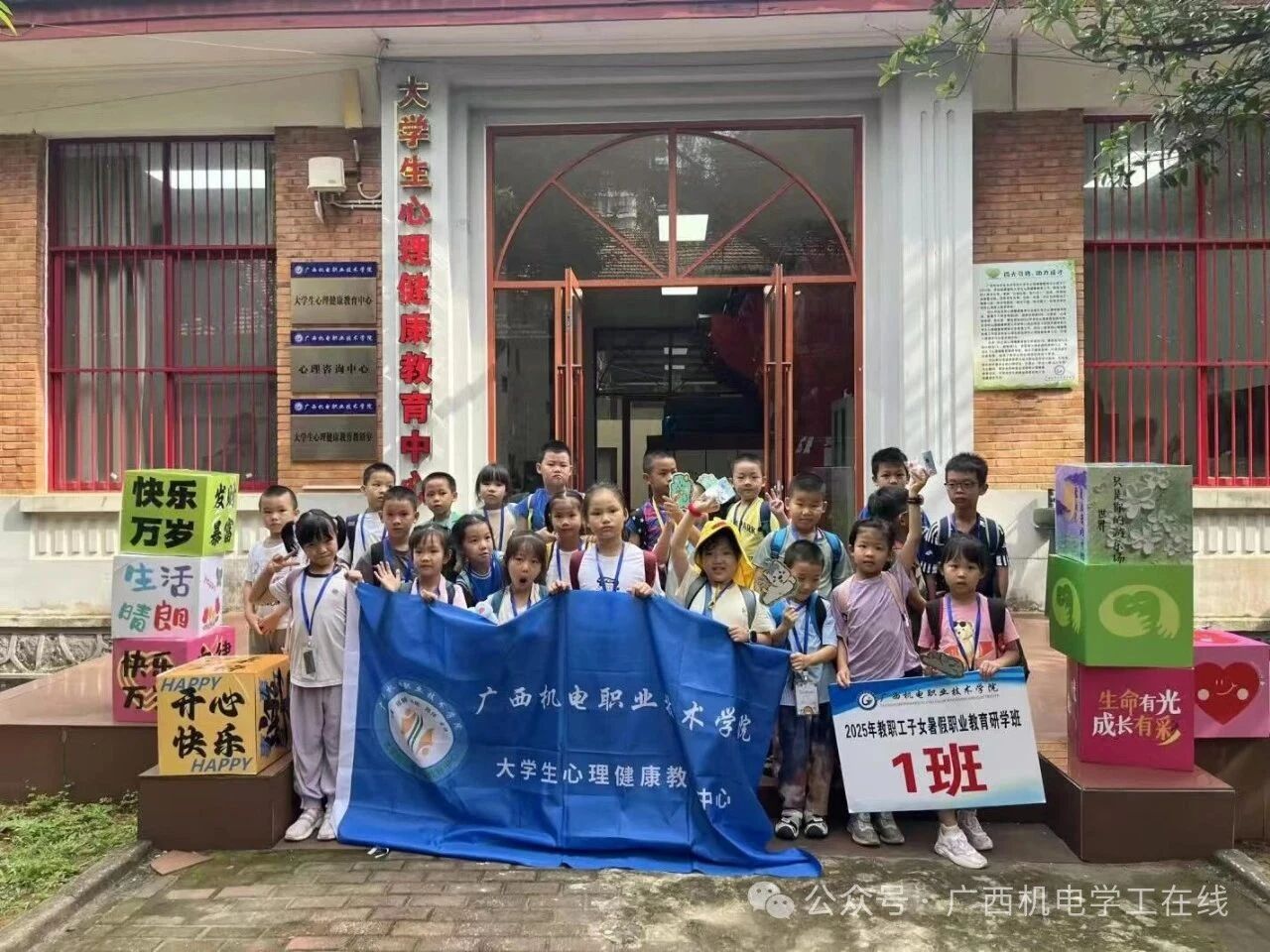 7月15日下午,大学生心理健康教育中心迎来了一群特殊的小客人——本校教职工的孩子们。作为中心配合工会小学生暑期职业教育研学班、关爱教职工和传递温暖的重要举措,这场专为“校园宝宝”们策划的研学活动温馨落幕,让孩子们在熟悉的校园里,开启了一段奇妙的心灵探索之旅。