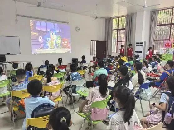 最后,小朋友们入座团辅教室,心理动画《头脑特工队》的放映,让孩子们认识了乐乐、忧忧、怒怒等可爱的情绪小精灵。当看到莱莉因为情绪变化而经历各种小波折时,孩子们时而紧张地攥紧小拳头,时而跟着乐乐的笑容露出开心的表情。结束时,一个小男孩说:“我生气的时候,怒怒就会发火!但我现在知道,可以让乐乐出来陪它玩。”小朋友们说自己认识了5个情绪朋友,非常开心。