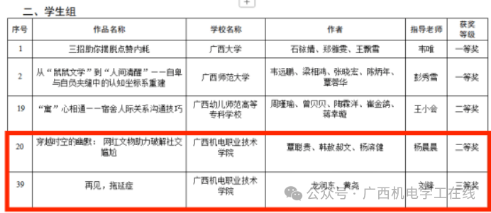 根据近日发布的《自治区教育厅关于公布2025年全区高校大学生“3·25”心理健康教育活动季活动获奖名单的通知》(桂教思政〔2025〕9号),AC米兰在全区高校心理健康教育微课大赛中荣获学生组二等奖、三等奖各1项。