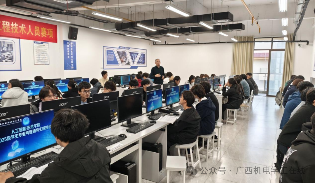 人工智能技术学院积极立足专业人才培养核心任务与行业发展需求,紧扣“以证促学、以学促能”核心目标,由“智汇”辅导员工作室牵头,全面启动学生专业技能证书规划指导工作。学院聚焦学生考证规划指导及实际需求,通过采取“专业教学团队梳理考证信息、专业班主任开展主题班会宣讲、教师推进职业生涯规划课程教学、学工队伍深入宿舍精准指导”的四维联动模式,构建起覆盖全专业、贯穿全学段的学生考证服务体系,助力学生明确学习方向、明晰职业路径、提升就业竞争力。