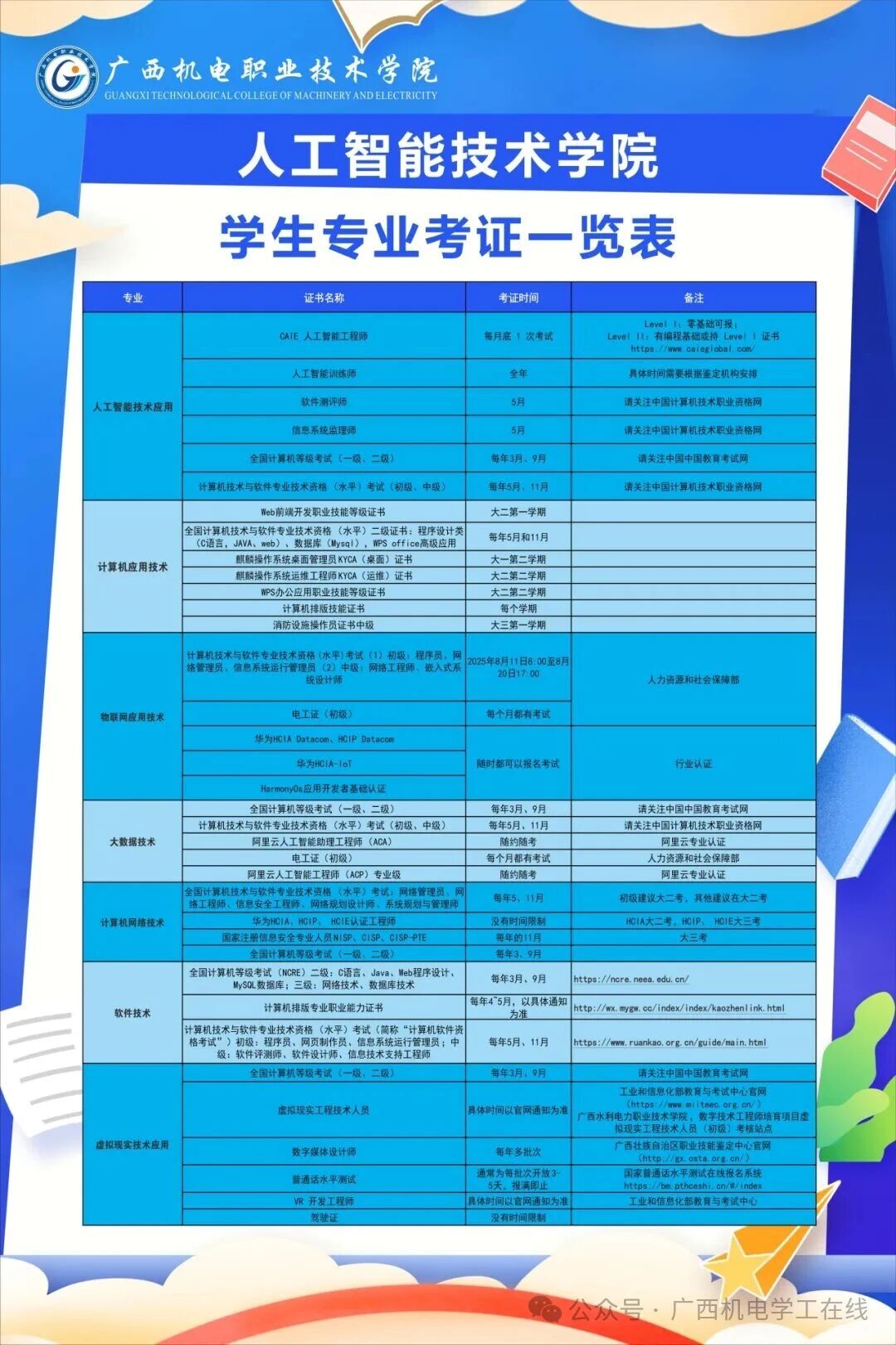 人工智能技术学院学生专业考证一览表
