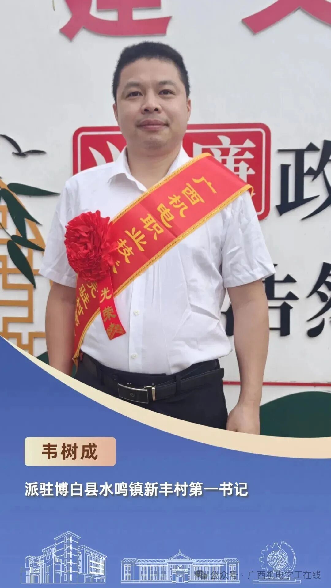 去年5月,韦树成老师积极响应乡村振兴工作号召,克服家庭困难,赴博白县水鸣镇新丰村担任驻村第一书记。到任后,他深入田间地头走访调研,紧扣“党建+产业”融合思路,以党建引领赋能乡村振兴,切实增强村民幸福感、获得感。他关爱学生,六一前夕积极奔走,为村里60名家庭困难学生筹集学习礼包;他心系群众,在危急时刻勇救落水儿童,在山火燃起时身先士卒守护村民生命财产安全。他用实际行动树立了担当奉献、心怀大爱的师德标杆,在乡村振兴一线践行着立德树人的初心使命。