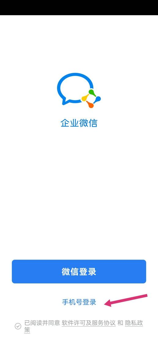 在企业微信登录页面选取【手机号】登录,输入手机号码,获取短信验证码,验证完成即可登录企业微信。手机号码务必与学校智慧学工系统登记的手机号码一致,否则无法成功登录。