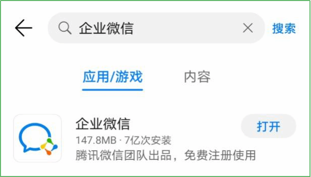可在手机端应用商店搜索“企业微信”,点击安装即可。
