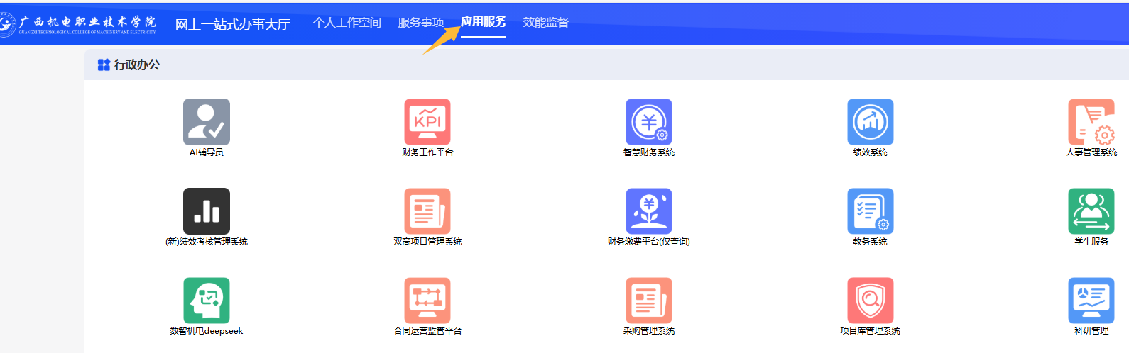 方式二:进入“办事大厅”,点击上方“服务应用”,找到需要的业务系统。