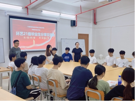 2024年6月29日,我院环境艺术设计专业在弘毅楼1-102画室成功举办了一场别开生面的毕业生分享交流会。环境艺术设计专业的师生们齐聚一堂,共同聆听学长学姐们的成长故事和职场感悟。学院党委书记唐若茹、副院长兰育平、任慧敏、副书记黄梨锦等领导也亲临现场,为毕业生们送上祝福与鼓励。学院党委书记唐若茹在致辞中表示,环境艺术设计专业作为学院的重要学科之一,一直以来都致力于培养具有创新精神和实践能力的高素质人才。她勉励毕业生们不忘初心,砥砺前行,在艺术设计的道路上不断追求卓越。副院长兰育平、任慧敏也分别对毕业生们表达了殷切的祝福和期许。
