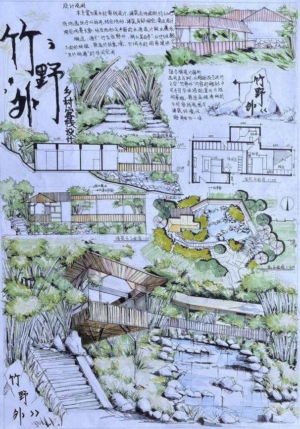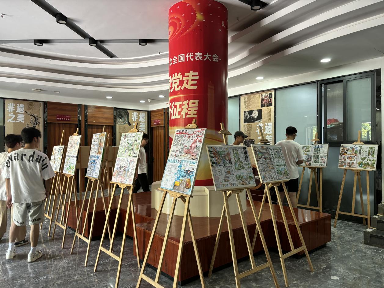 7月10日,艺术楼一楼成功举办了《手绘技法表现》课程的课业作品展。此次展览以“手绘·心绘 —— 灵感的纸上旋律”为主题,充分展示了环艺2301、2302班学生们在课程学习中的卓越成果与独特艺术创意。作品题材广泛,风格各异,包括家居空间设计、公共空间设计、景观设计等多个领域,共计展出50余件精心制作的作品。