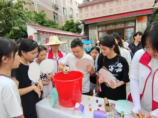 同时,实践团还携手旧金村村民开展了非遗漆扇的制作活动。在专业老师的指导下,村民们亲自动手参与漆扇的制作过程。从材料介绍、颜色选择、上漆到绘制图案,都承载着厚重的历史与文化底蕴。通过开展非遗漆扇的制作活动,鼓励当地村民和儿童参与到非遗文化的保护与传承中来,使其感受传统非遗文化的魅力。