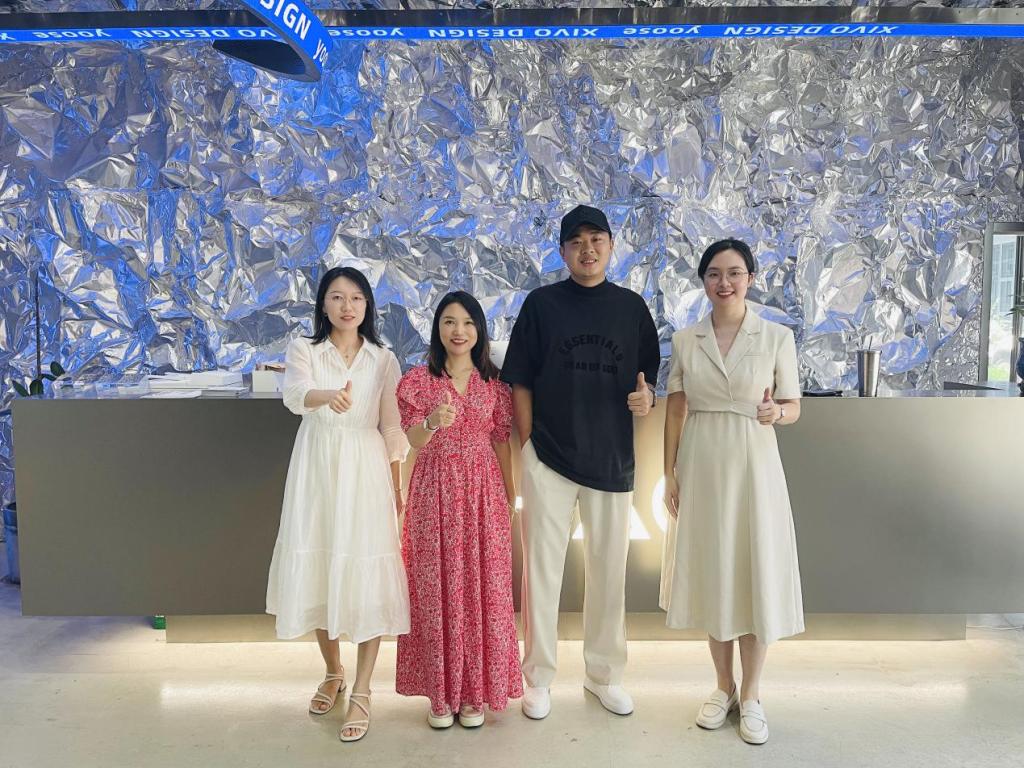 图1 与朗信设计集团总经理罗勇坚(左三)、合伙人颜泽强(左一)合影