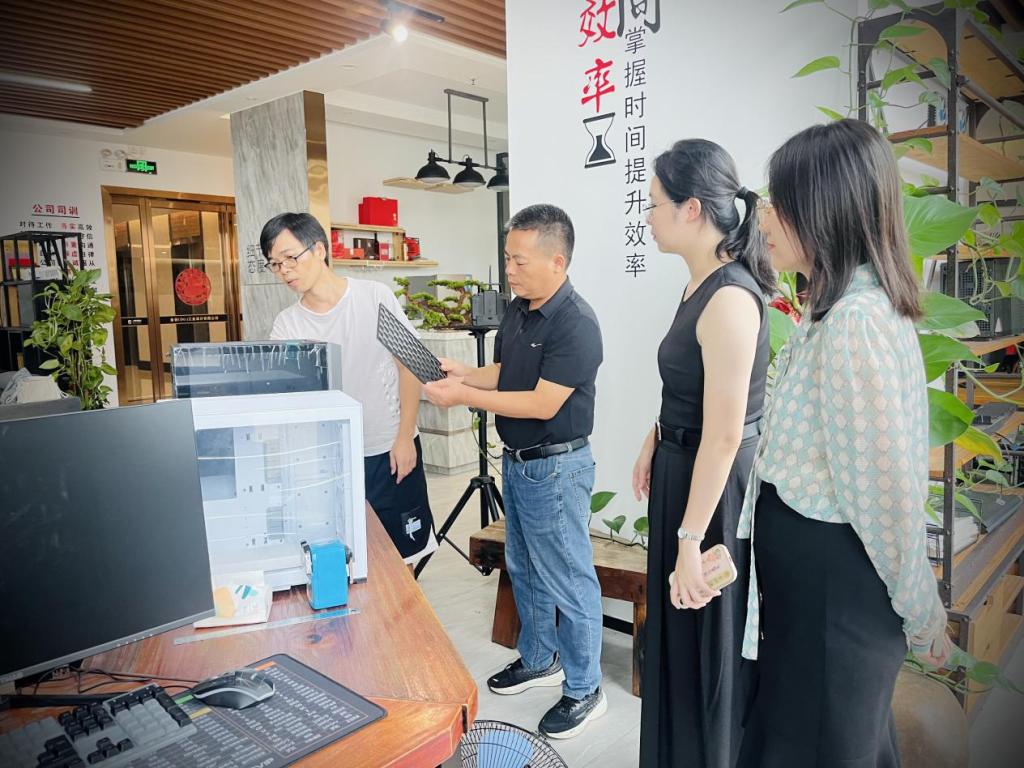 其间还赴东莞看望毕业生所在的东莞市金谷工业设计公司。该公司是从事工业产品造型设计、工业产品开发、技术服务、企业品牌策划等。近几年主要为电脑周边产品进行设计。毕业生担任设计总监一职,其从岗位的能力需求、AIGC的应用范围、设计行业发展动态提出了建议,并对工业设计人才培养思路及课程设置提出了宝贵意见。