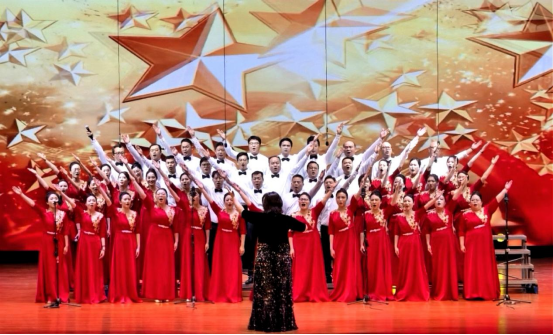 在比赛当天,弘毅楼大礼堂内气氛热烈,各参赛队伍依次登台,用歌声抒发对劳动的赞美、对工会百年历程的敬意。工业设计学院的教师们精神饱满,意气风发,昂首进场。随着音乐缓缓响起,双人朗诵环节率先开场,唐晓辉老师声音雄浑有力,周晓老师语调铿锵坚定,他们用饱含深情的话语,回顾了党的百年奋斗历程,从石库门到天安门,从雪山草地到烽火硝烟,从改革开放到脱贫攻坚、乡村振兴,每一句都诉说着党带领人民取得的伟大成就。随着朗诵结束,熟悉的旋律响起,工业设计学院的教师们以饱满的热情、嘹亮的歌声唱响《没有共产党就没有新中国》。歌声坚定有力,动作整齐划一,唱出了对党的感恩与敬意,唱出了对国家繁荣昌盛的美好祝愿,也唱出了工业设计学院全体教师团结一心、积极向上的精神风貌。
