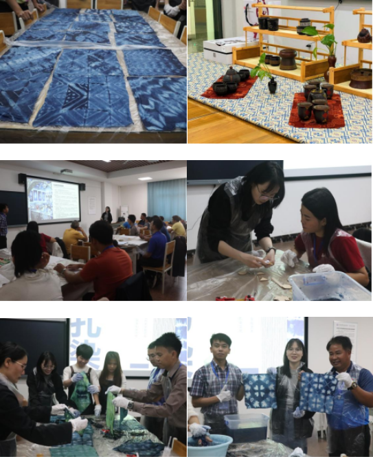 上午,非遗文化研修首站从扎染体验课启幕。学院冯甜教师以“织物上的水墨画”为引,向泰国学员系统讲解扎染的历史渊源与核心技法。在课堂上,代表团成员手持棉布,跟随指导学习“折叠扎”“夹板扎”等传统技法,用皮筋、木棍固定织物后,将布料浸入靛蓝染料。随着氧化反应的层层渗透,展开织物,各种艺术图案跃然布上,成员们感受到扎结的松紧竟能创造出如此神奇的变化,很好地体现了中国手工艺的哲学智慧。