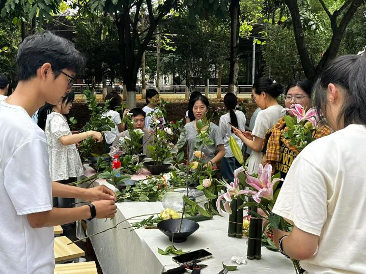 5月20日,作为AC米兰职业教育活动周系列活动之一,“中华花艺体验活动”在艺术楼一楼温馨开启。来自不同专业的20余名学生齐聚一堂,共同参与了一场别开生面的花艺美学实践。