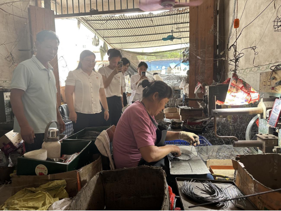 下午,党员代表深入旧门村产业区开展“设计赋能乡村振兴”主题调研,走访了旧门村制衣厂、芒编工作坊,聚焦包装设计、品牌视觉升级等领域的实际需求,现场提出“包装可视化升级”的初步方案,为旧门村产业“强链补链”提供智力支持。