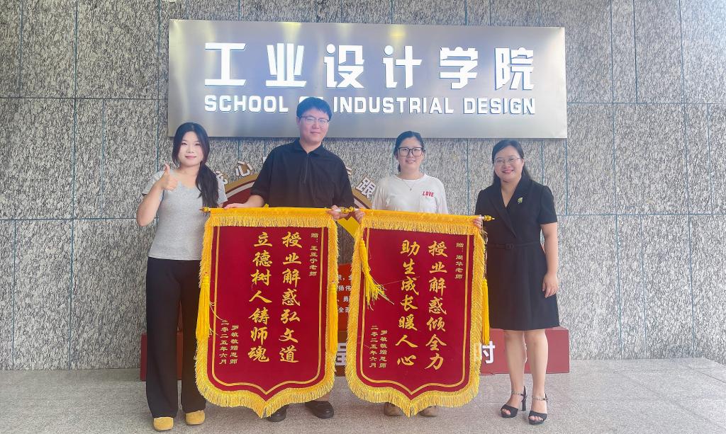 6月28日,工业设计学院22级毕业生罗敏满怀感恩之情,将两面锦旗分别赠予周华与王亚宁老师,感谢两位老师在今年的专升本培训中的辛勤付出,感谢学院对升学学子培养的关怀。这两面锦旗,不仅承载着学子感念师恩的深情厚谊,更是工业设计学院教学团队的育人精神的现实彰显。
