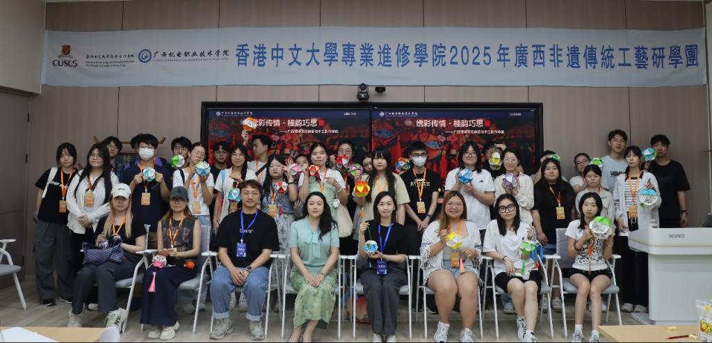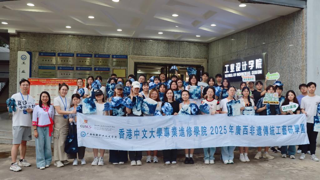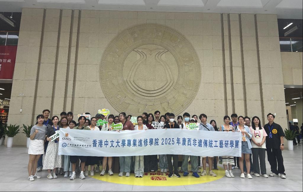 2025年7月28日至8月2日,工业设计学院成功承办香港中文大学专业进修学院“广西非遗传统工艺研学活动”。36名香港师生深入广西,通过六天的文化体验与产业探访,亲身感受八桂大地的非遗魅力与现代工业脉搏。