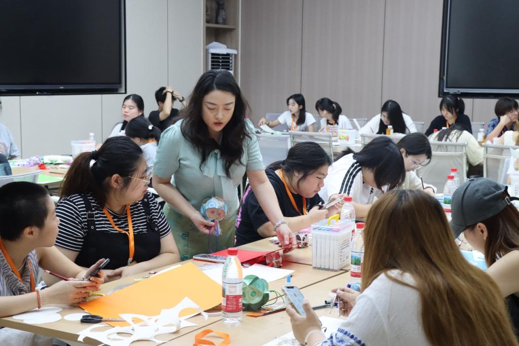 绣球制作:在任慧敏老师带领下,将壮族纹样融入绣球,感受这一传递情谊的文化载体。