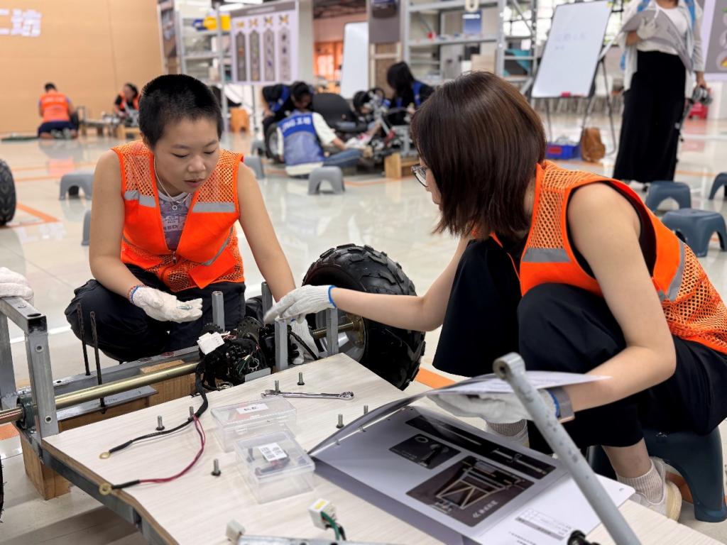 匠心“造”车体验:最令学员们兴奋的是在LING工坊的实践环节。在专业教师指导下,香港师生分组协作,动手拆解、认知核心部件,并最终成功组装完成一台新能源汽车模型。“这不仅是动手实践,更是零距离触摸了中国新能源汽车发展的强劲脉搏!”一位参与组装的香港学生兴奋地表示。