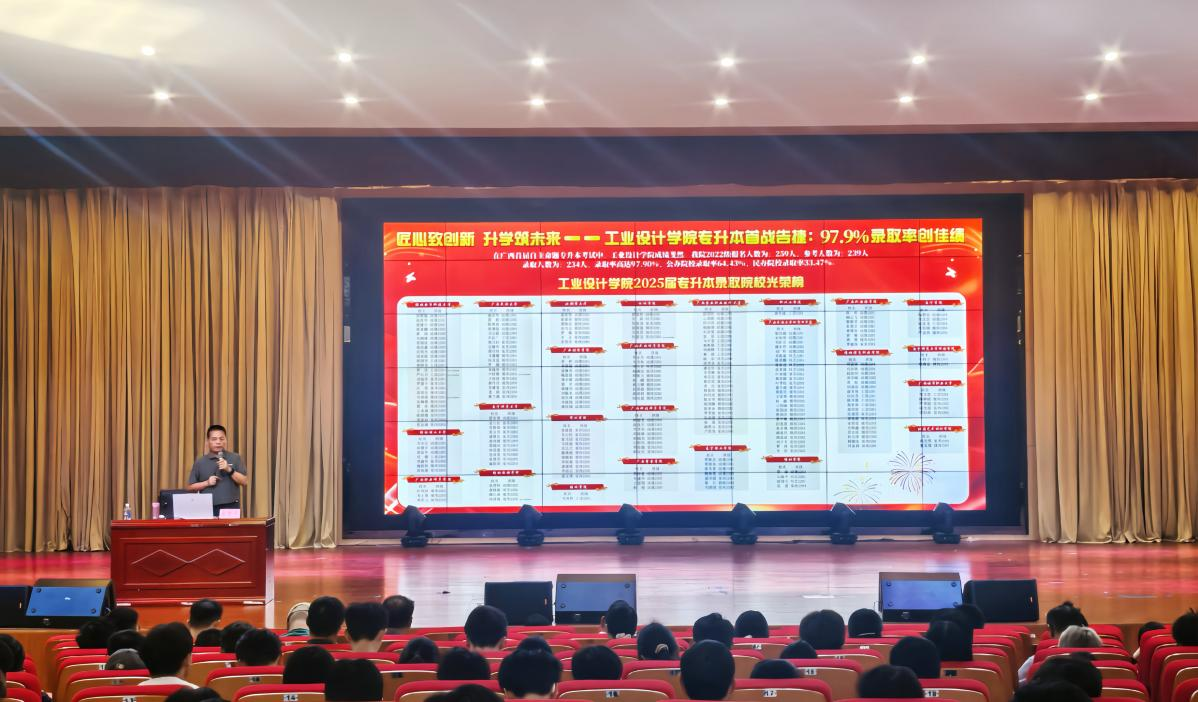 在互动环节,兰育平院长结合自身求学经历,为新生送上三句成长箴言:“管好自己”是自律的起点,需从时间管理、目标设定做起;“坚持就是胜利”是突破瓶颈的关键,鼓励新生以“每天完成一件小事”积累进步;“持续深造”是职业发展的阶梯,他重点介绍学校与广西民族大学等合作自考专本衔接学历教育,以及今年学院专升本考试的成绩,2025届专升本率达到97.9%,建议有升学意愿的学生早做准备、系统备考。此外,针对设计专业特点,他强调“手绘能力+软件技能+跨界思维”的复合型人才培养方向,鼓励新生积极参与校企合作项目,在实践中锤炼“设计+技术”的双核能力。