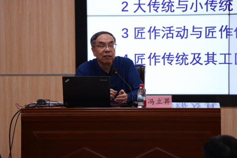 讲座中,冯立昇教授从“中国古代的匠作文化与技术传统” “大传统与小传统:两种匠作的作用” “匠作活动与匠作传统中体现的工匠精神” “匠作传统及其工匠精神的现代价值”四个方面对中国匠作传统与工匠精神进行阐释。