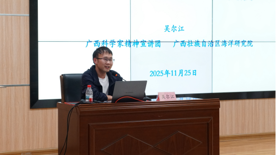 为深入学习贯彻习近平总书记考察广西时大力“发展向海经济”的重要指示精神,推动工业设计与海洋产业深度融合,助力广西海洋经济高质量发展,11月25日下午,学院特邀广西科学家精神宣讲团成员、广西壮族自治区海洋研究院专家吴尔江,开展以“贯彻总书记广西考察精神:高效有序利用海洋资源助力海洋经济高质量发展” 为主题的专题讲座。讲座由学院学工办公室主任李晶晶主持,学院师生代表现场参会。