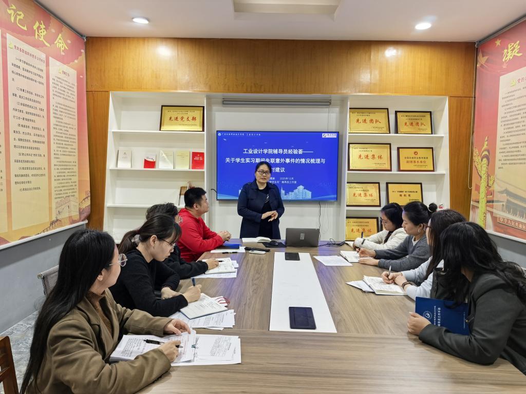 为进一步加强学生实习安全管理,提升辅导员应对实习安全事件的应急处置能力。12月9日,工业设计学院“桂艺生花”辅导员工作室举办“学生实习期间突发事件应急处理”主题沙龙。本次沙龙通过案例剖析、互动研讨与经验总结,系统梳理了学生实习期间风险防范与应急响应的工作路径。学院党委副书记黄梨锦主持本次活动,辅导员唐建新作案例分享,全体辅导员参与学习交流。