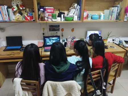 我系学生在宿舍观看长征纪录片
