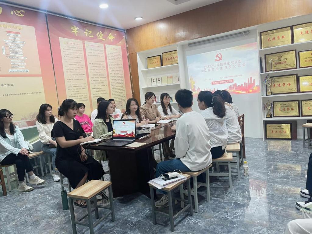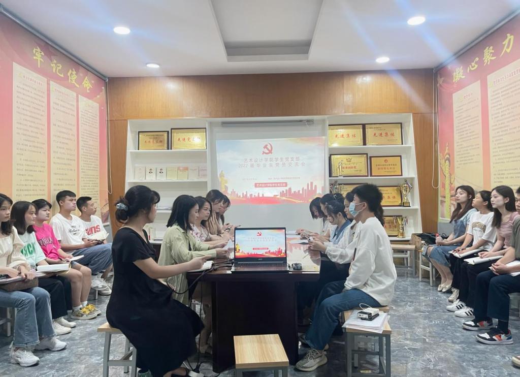 6月25日下午,艺术设计学院学生党支部在学院党员政治生活活动室召开毕业生党员教育活动暨2022届毕业生党员交流会。会议由学院学生党支部书记李晶晶主持,学生党支部教师党员、2022届毕业生党员、中共预备党员、发展对象及入党积极分子代表参加座谈会。