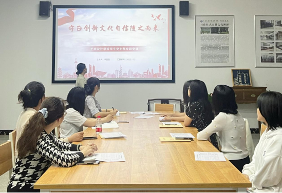 为庆祝党的二十大胜利召开,11月2日上午,艺术设计学院学生党支部组织全体党员和入党积极分子上了一堂“守正创新,文化自 信随之而来”的专题党课,本次党课由支部书记李晶晶同志主持。
