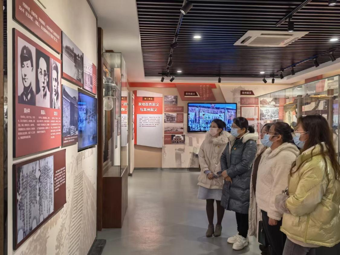 忠诚心向党,献礼二十大!为进一步拓宽党员教育渠道,激励广大党员充分发挥先锋模范作用,激发爱党爱国热情,以实际行动庆祝党的二十大胜利召开。艺术设计学院教职工党支部联合学生党支部于12月3日开展“‘艺’心向党——献礼二十大 奋进新征程”主题党日活动,带领党员、入党积极分子前往李明瑞韦拔群纪念馆参观学习。追寻红色印记,感悟革命情怀,锻炼广大入党积极分子干净担当的政治品格,在党的二十大召开之际,强化党的思想教育的洗礼。