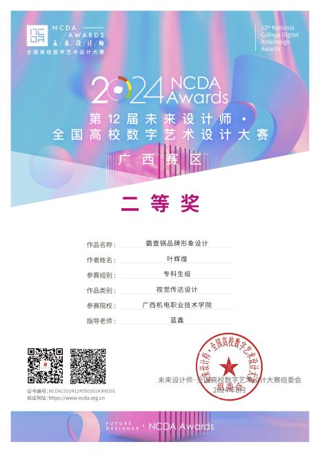 3. 指导学生参加2024年全国高校数字艺术设计大赛广西区赛二等奖