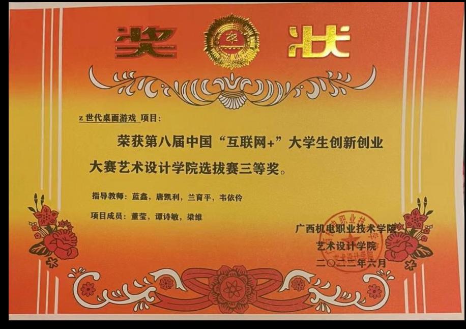 3. 指导学生参加第八届中国“互联网+”大学生创新创业大赛艺术设计学院选拔赛三等奖