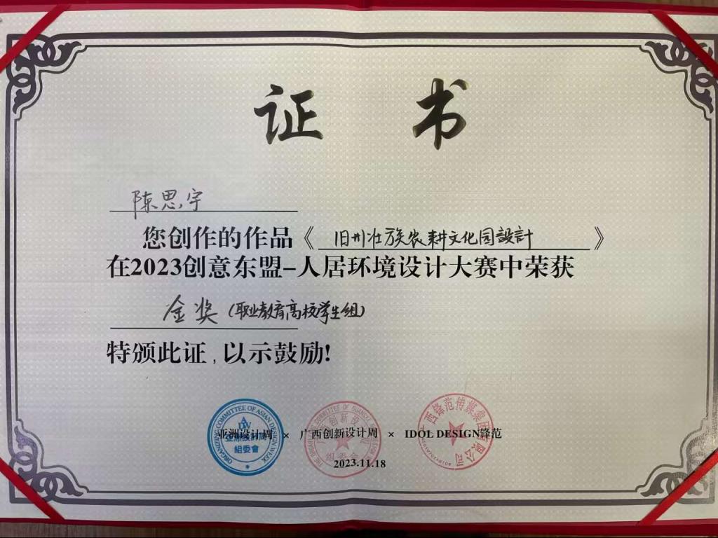 个人参赛获奖:2023创意东盟-人居环境设计大赛金奖