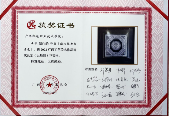 5、2022广西工艺美术作品等次认定(大师组)三等次。