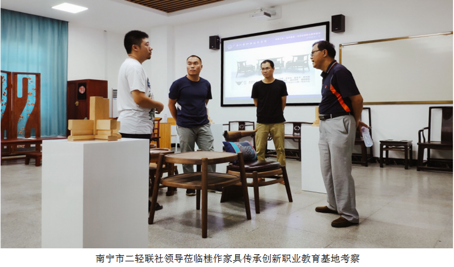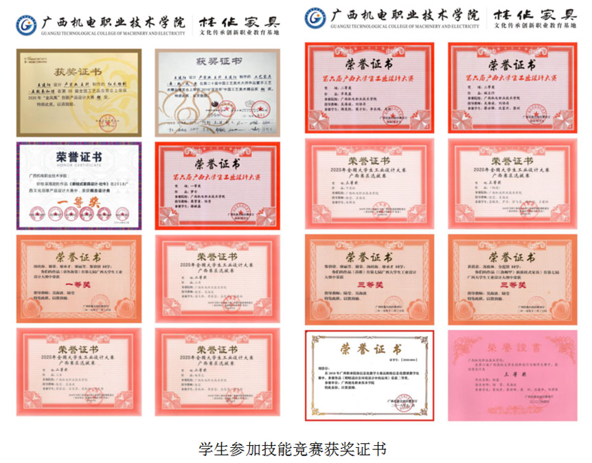 基地依托学院机电专业技术优势,以家居产业链为基准,构建了宽基础、多方向、重应用、精实操的家具设计、家具制造、家具营销和家具管理“四位一体,通专结合”复合型应用人才培养体系,致力于桂作家具文化传播、桂作家具技艺传承、桂式家具产品研发等教育培训与设计实践活动,为打造“桂作家具”品牌文化提供支撑。基地成果《高校中华优秀传统文化艺术传承创新——AC米兰中国官网民族工艺(桂作家具)传承创新职业教育基地建设案例》获广西第六届大学生艺术展演活动美育改革创新案例二等奖。