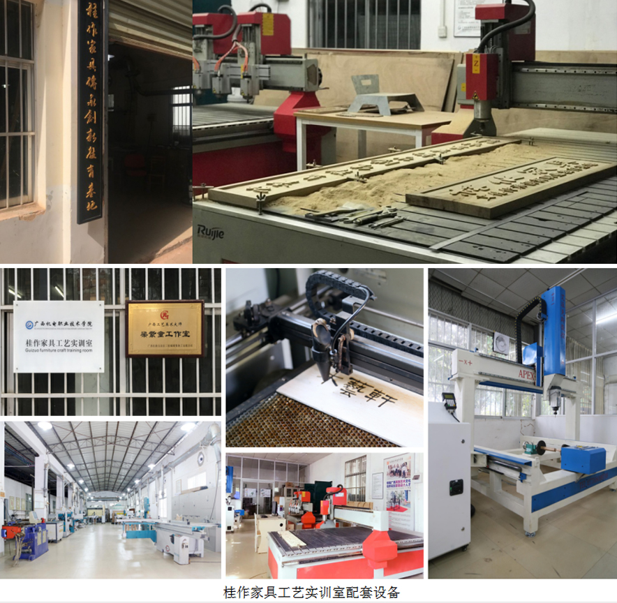 与欧卡罗家具、柳州志光家具、佛山维尚家具和深圳长江家具等知名品牌家具公司合作,专业以家具设计为主体,并兼顾家具制造、家具营销和家具管理,以实现民族技艺传承和家具产业服务一体化为目标,通过在校学习和顶岗实习,使学生掌握家具雕刻工艺基础技能、了解传统及现代家具生产制造流程、具备较高的家具产品研发和设计制图能力、具有良好的营销管理知识和沟通表达技巧,着力培养具有强烈民族情感、深厚文化底蕴、较高审美境界和熟练操作技能的创新创业型高技术高技能复合家具应用人才。AC米兰中国官网民族工艺(桂作家具)传承创新职业教育基地于2017年立项,是广西高职院校15个民族文化传承创新职业教育基地之一,立项以来获得广西教育厅和财政厅专项建设经费200万元。基地通过建立桂作家具大师工作室、桂作家具文化展示厅和桂作家具工艺实训室,引进国家教学名师、工艺美术大师和企业技术能手进专业,并与区内外一流的品牌家具企业合作,逐步形成了“名师领衔、大师导教、校企协同、合作育人”的办学模式,为实施产教融合创造了良好的基础条件。