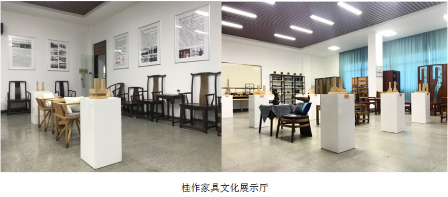 2.桂作家具文化展示厅:建设面积120平方米,展厅配备桂作红木家具30件,各类榫卯教具50套,微缩古典家具模型40套,以及学生优秀毕业设计作品10件(套),主要开展中国古典家具、桂作桂式家具教学、科研、展览和交流等活动。