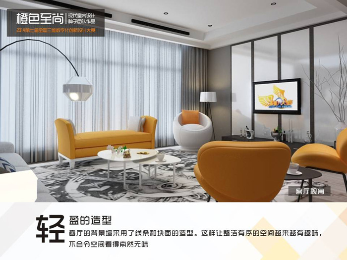 空间设计类:韦香琳 刘崇成 杨丽蓉 设计作品《橙色至尚》