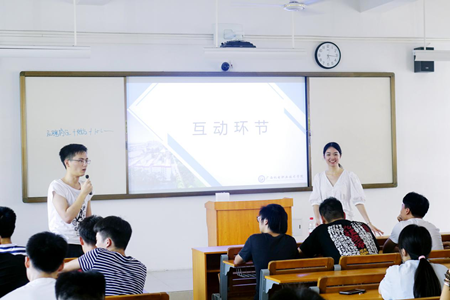 本次活动分两个环节进行,第一环节优秀毕业生王聚坚、关婷婷、郑永成、梁彬生从求职准备、工作内容、职业道德、升学准备、创新创业等多个方面畅谈了自己的亲身体会。倡导大学是成长和成才的地方,在大学期间,不但要学习专业知识,还要注重大学生自身综合素质的培养、创新创业的能力提升。第二环节中的交流提问,同学们踊跃参与,从就业压力、升学条件、暑期实践说出自己内心的困惑,得到了师兄师姐们耐心的解答。