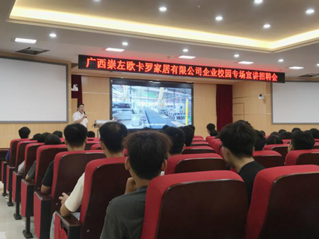 办一流的专业,必须依托一流的企业;办高水平的专业群,必须依托高水平的产业群。近年来,随着国民经济的发展和生活水平的提高,区内外定制家具产业突飞猛进,家具设计人才需求倍增。我系家具艺术设计专业瞄准区内外一流的家具企业,先后引进了广西崇左欧卡罗家具公司、广西欣兴家具公司、欧派家具南宁分公司、深圳长江家具公司、佛山维尚家具公司和南海健迪家具公司等6家知名家具企业开展校园招聘会,不仅为本专业毕业生提供了广阔的实习就业平台,还为兄弟专业毕业生提供了更多的实习就业机会。通过宣讲、面试和录用等环节,加深了学生对企业文化和工作岗位的了解,提高了学生对跟岗实习教学环节的认识。各企业招聘会期间,同学们积极准备面试材料,沉着回答考官问题,体现了我系家具学子奋发有为、积极进取的精神风貌。