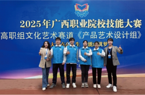 近年来,师生团队在各级赛事中屡获佳绩六十余项,先后荣获2025 年广西职业院校技能大赛《产品艺术设计》赛项金奖、2024 年全国行业职业技能竞赛玩具设计师赛项职工组一等奖等重要奖项,并在广西职业院校技能大赛《数字化产品设计与开发》等赛项中斩获二等奖等。列表中为近两年的主要获奖情况。