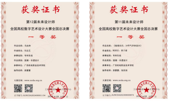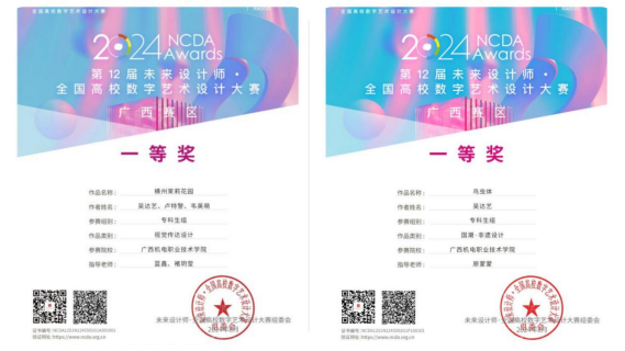 2024全国高校数字艺术大赛区赛一等奖、2023广西大学生艺术展演区赛一等奖