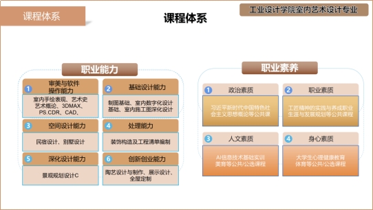 拓展民族非遗、全屋定制、展陈设计等领域课程,融入绿色建筑标准、装饰工程法规等跨学科内容,全面提升学生在艺术美学、智慧空间营造、可持续设计、跨领域协作等方向的综合竞争力。