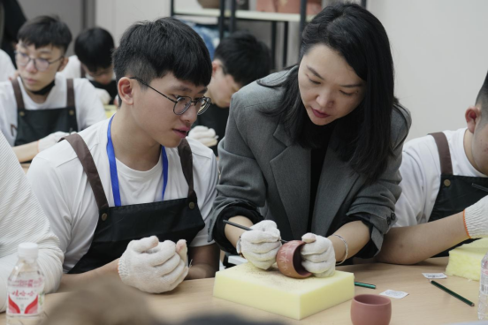 室内艺术设计专业积极参与社会服务。新加坡南洋理工学院师生组成的国际研学团到访工业设计学院,开启以“非遗文化传承与创新设计”为主题的研学交流活动,为坭兴陶制作与苗族扎染技艺两门特色课程,通过“讲授+实践体验”的方式,让国际师生零距离感受中国传统工艺的独特魅力。研学活动让新加坡南洋理工学院的留学生们深度领略了中国非遗文化的魅力,进一步加深了中新两国青年学生跨文化的交流,为学校在深化与东盟国家的职业教育合作奠定了良好基础。
