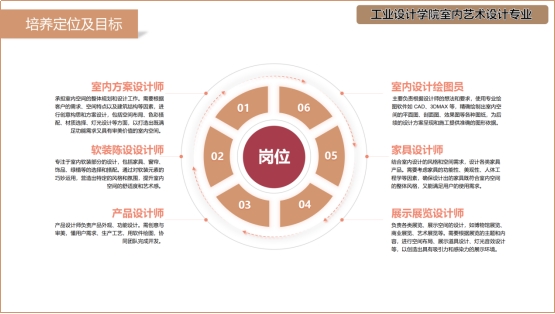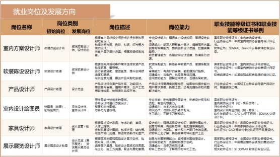 专业主要面向室内、建筑、家具等企业从事室内方案及绘图设计、软装陈设设计、产品设计、家具设计和展示展览设计等相关工作。