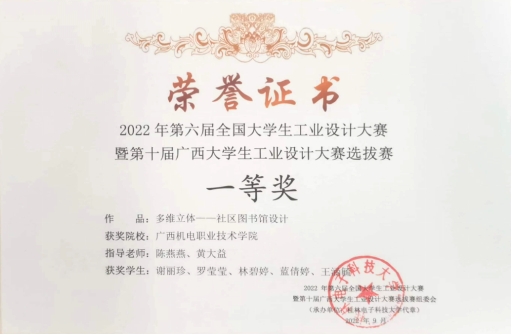 指导学生获第十届广西大学生工业设计大赛一等奖