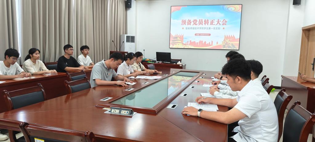 本次预备党员转正大会为智能焊接技术学院学生党支部注入了有生力量,全体党员共同接受了一次深刻的党性教育和思想洗礼。希望新转正的党员同志能够始终牢记入党誓词,不忘初心、牢记使命;坚持理论学习,筑牢思想根基;立足专业学习,练就过硬本领;密切联系群众,践行服务宗旨。期待各位同志在今后的学习生活中,以更高的标准严格要求自己,在思想引领、学业发展、志愿服务等方面切实发挥先锋模范作用,用实际行动诠释共产党员的责任与担当。