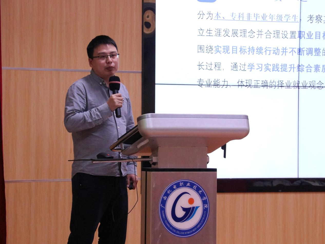 首场讲座于当天下午在博远楼五楼1号报告厅举行,乔红岩老师以《第三届职规赛赛事规则细则解读》为题,为在场师生进行了深入浅出的权威解析。他紧扣大赛最新规程,逐条梳理关键赛制与评分标准,帮助大家精准把握备赛方向,扫清了规则理解上的盲区。