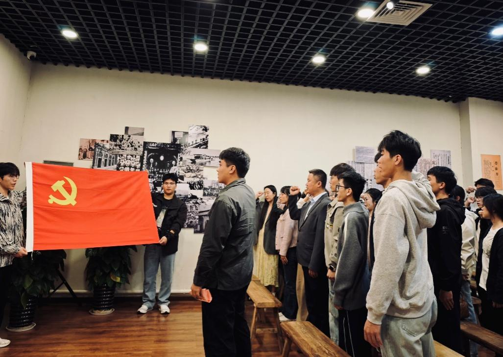 活动尾声,全体党员教师在工人讲堂整齐列队,面对鲜红的党旗高举右拳,庄严重温入党誓词。铿锵有力的誓言回荡在现场,既是对革命先辈的深切缅怀,也是对初心使命的再次宣誓,将入党誓词的政治承诺与工运先辈的奋斗精神深度交融,进一步凝聚了奋进力量。